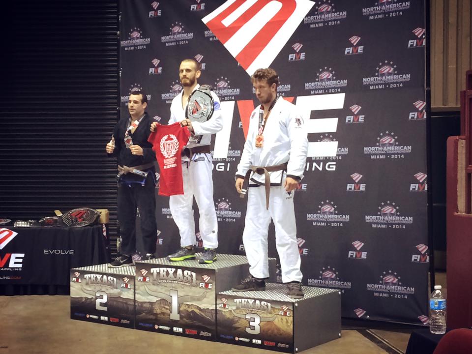 He was awarded gold medals at the 2014 Five Grappling North American Invitational for Adult Brown Belt Middleweight Division following qualification at the Five Grappling Texas 1 Tournament with a gold medal in the Adult Brown Belt Middleweight Division and was awarded a silver medal in the Adult Brown Belt Absolute Division.